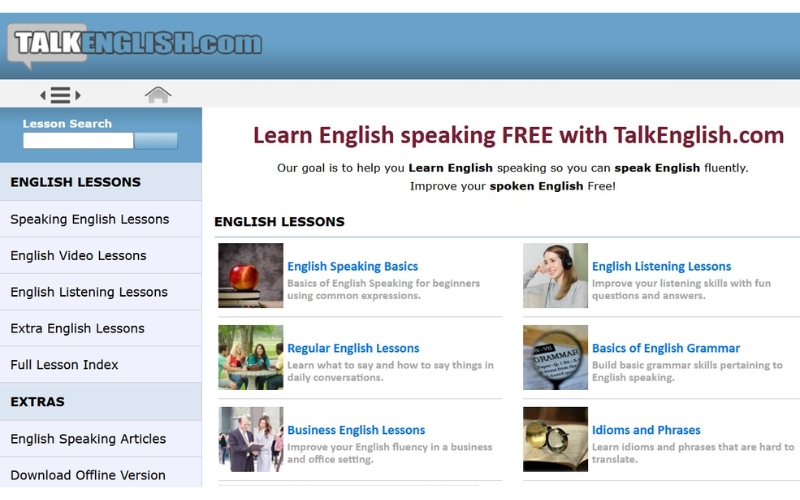 Talk English là website học tiếng Anh online miễn phí chất lượng hàng đầu, giúp các bạn ôn luyện hiệu quả để nâng cao trình độ ngoại ngữ. Ngoài ra, trang web còn kết nối người học với giảng viên trong những khóa học online 1 kèm 1, chi phí rẻ nhưng hiệu quả cao. Hệ thống bài học trên website được biên soạn bởi đội ngũ chuyên gia ngoại ngữ với phương pháp học tập hiện đại, dễ hiểu.